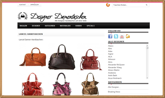 Ich mag das Konzept und die Idee, die hinter Designer-Damentaschen.de steckt. Man muss nicht mehrere Shops durchwühlen, sondern sucht sich einfach sein Lieblingsstück aus, klickt auf Shop und fertig. Einfacher kann es uns Frauen gar nicht gemacht werden. Jedoch ist mir aufgefallen, dass zumindest ein Shoplink bei einer Tasche nicht funktionierte. Da erschien dann nämlich die Meldung, dass die Seite im Shop nicht gefunden wurde. Das wäre aber auch das einzige Manko und vielleicht ist die Tasche auch einfach inzwischen ausverkauft. Aber vielleicht könnten die Betreiber von der Website designer-damentaschen.de das noch ändern.