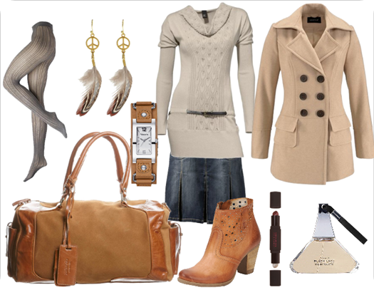 Jeansrock, Pullover und Mantel würde ich soooofort auch nehmen, dazu bitte noch die Strumpfhose ;)