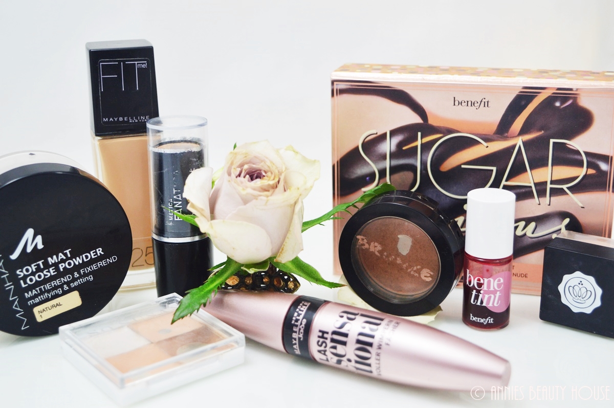 Bevor ich dann mit dem Make up beginne, warte ich, damit die letzte Creme gut einziehen und seine mattierende Wirkung voll entfalten konnte. Jetzt wird als erstes mit Concealer (in Stift oder Pfännchenform) alle unschönen Stellen kaschiert, anschließend wird mit dem Pinsel die Foundation aufgetragen, verteilt und eingearbeitet. Mit einem dunkleren und helleren Concealer wurde vorher und auch jetzt nochmals konturiert. Das wird an den entsprechenden Stellen später nochmal mit Bronzer wiederholt.