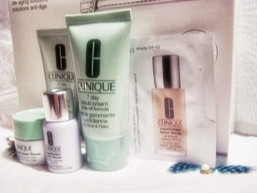 Jetzt für kurze Zeit im Kennenlern-Set! Clinique hat ausgewählte und aufeinander abgestimmte Pflegeprodukte für Sie zusammengestellt, die die Zeichen der Zeit bekämpfen und Ihrer Haut ein jugendlicheres Aussehen schenken. Das Set enthält 7 Day Scrub Cream (7 ml), Repairwear Laser Focus Serum (7 ml), Repairwear Laser Focus Eye Cream (5 ml) und Repairwear Laser Focus All Smooth Make-up (1,5 ml) in dem Farbton 3.