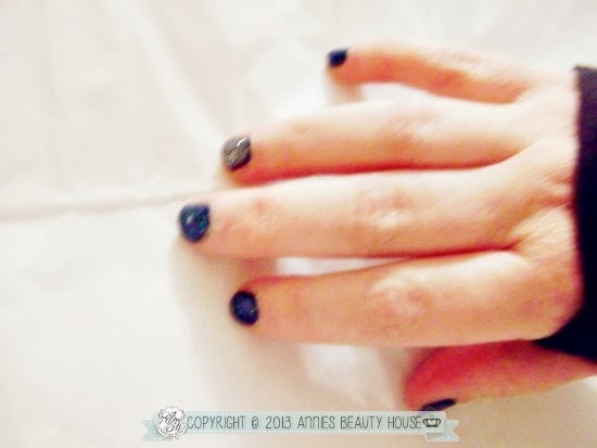 Der Auftrag des Lackes ist recht einfach, durch den schmalen Pinsel lässt sich der Lack gut und gleichmäßig, und vorallem streifenfrei, auftragen. Weitere Pluspunkte sind die kurze Trockenzeit und die gute Deckkraft + langer Halt auf den Nägeln.