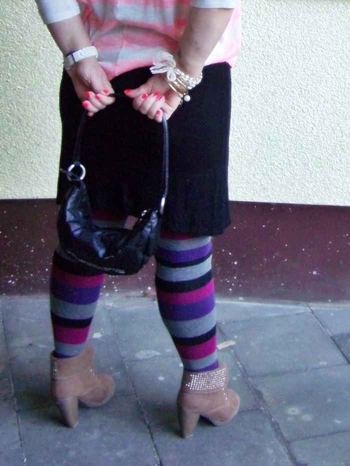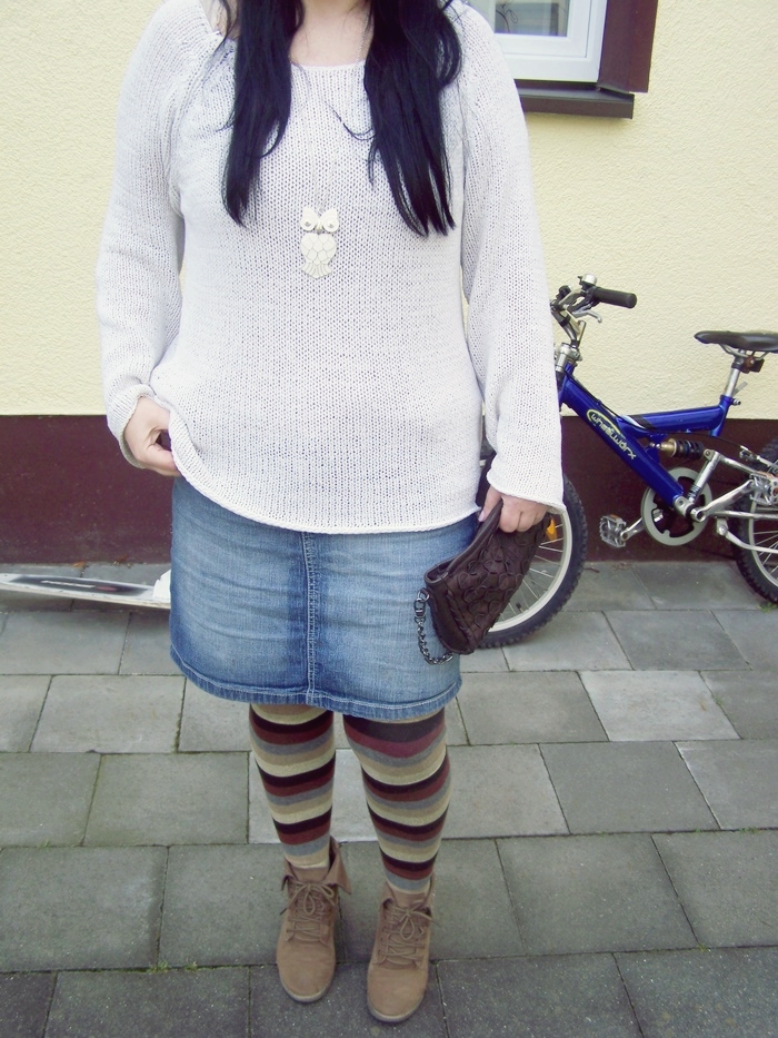 Normalerweise trage ich zu dem Kleid einen dunklen, vorzugsweise schwarzen Gürtel, da die Tunika aber auch weiß ist, fand ich es einen netten Kontrast. Die Strumpfhose habe ich gleich dreifach. Unter anderem auch, mit ein wenig anderen Farben. Kuschlig und bequem und man wird garantiert nicht kalt. Die Gefahr ist ja sonst im Winter schon groß.